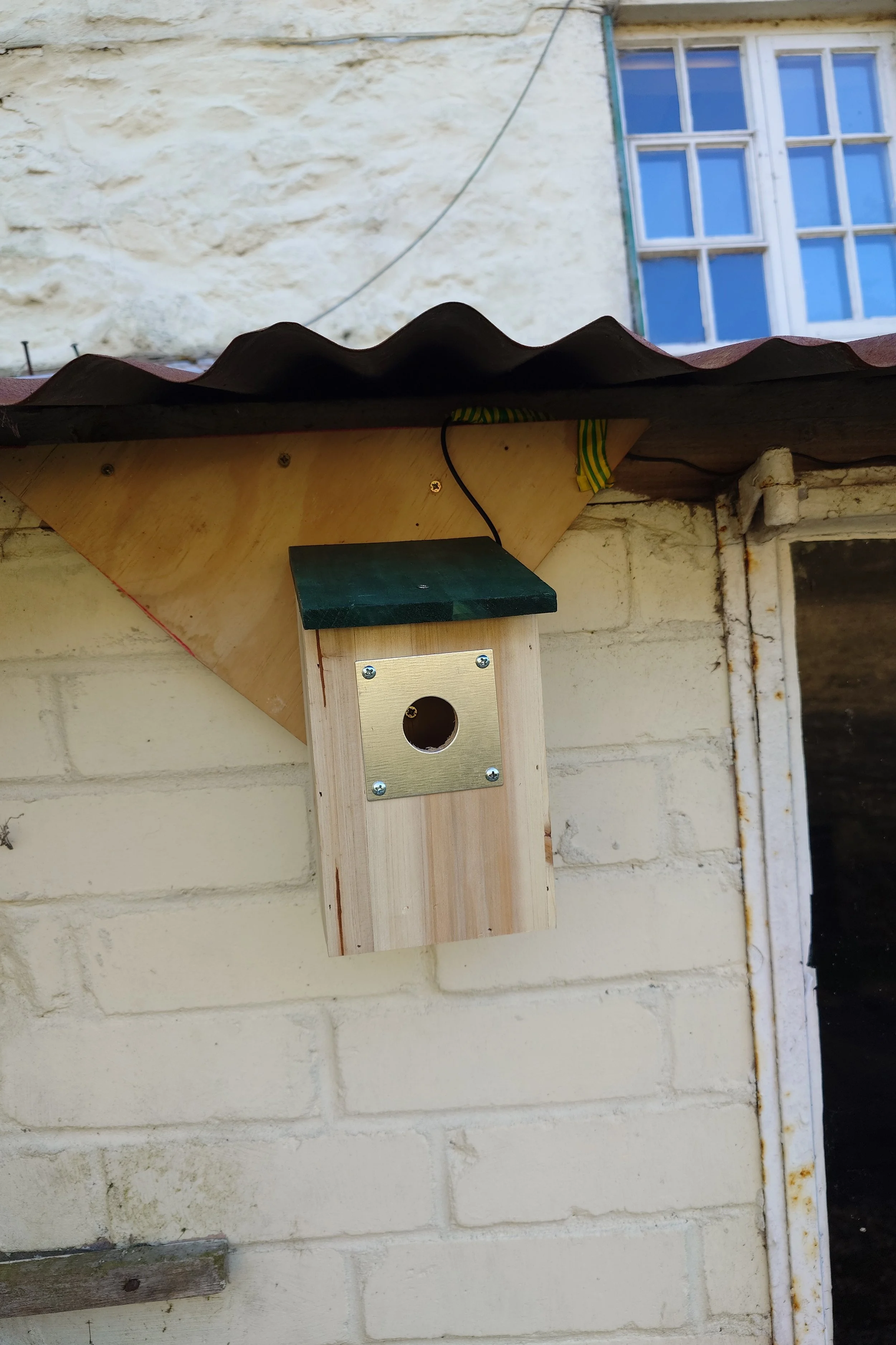 Our second big addition to the garden was a bird box that we fitted a camera into. Our idea was that if anything nested in it, we’d be able to live stream it on YouTube, however that idea was quickly dashed when we found out that the camera we got was unable to actually livestream to YouTube! We set the box up on the back of one of the lean-to’s that we have on the back of the house, as this would be far enough away from the feeder that there shouldn’t be any issues there, it would be out of both direct sunlight and the dominant wind directions, but most importantly, I would be close enough to a power socket for the camera.