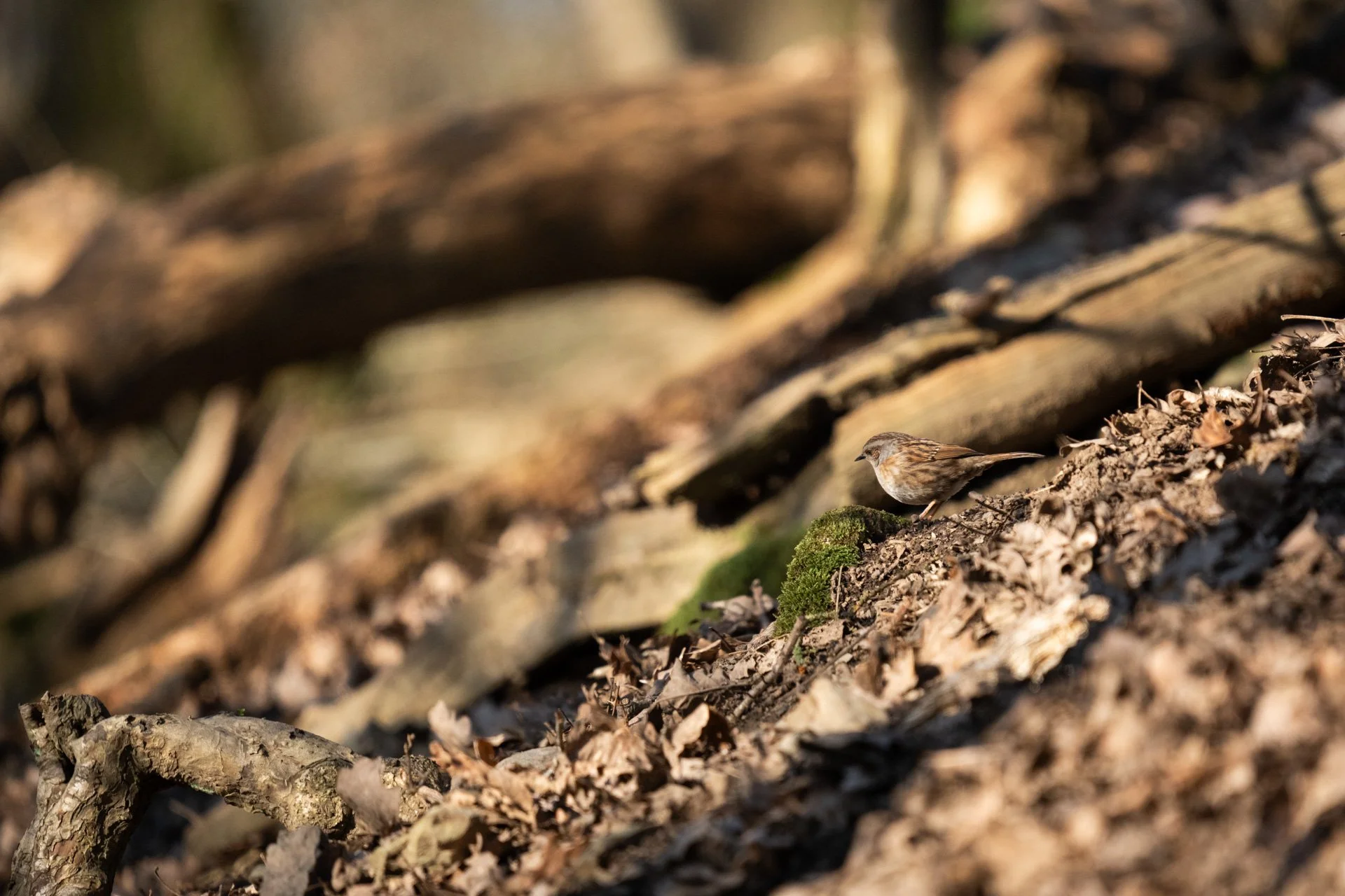 In the woods I stopped and waited at some of the lager trees, to help give me a bit of cover. I managed to get this image of a dunnock, that was searching through the leaf litter for its breakfast. I really like this image, but it was a shame that the dunnock wasn’t looking towards me, as I feel that would have really made this image go from OK to good.